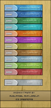 Ранги для ucoz by Logical-Portal (Ранги от LP). Скачать бесплатно. Красивіе такие икончки. Руководство по установки рангов в архиве. |