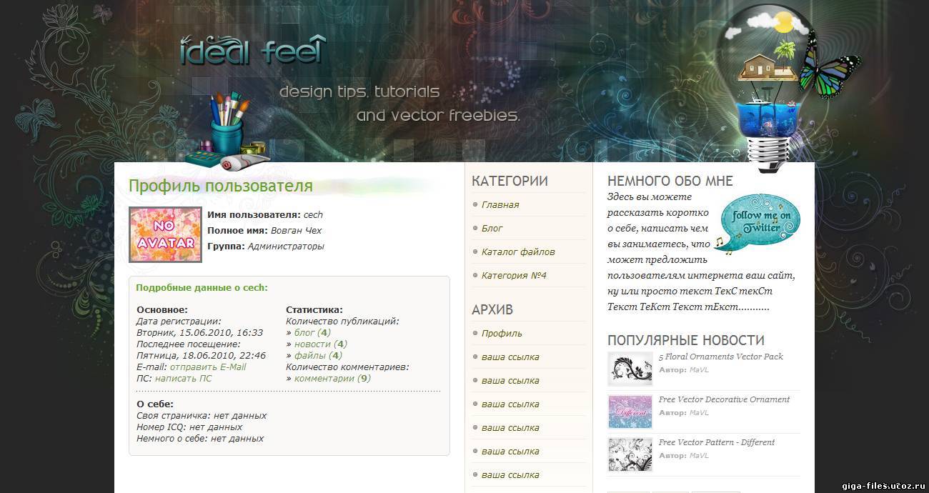 Оригинальный шаблон сайта ucozfan |
