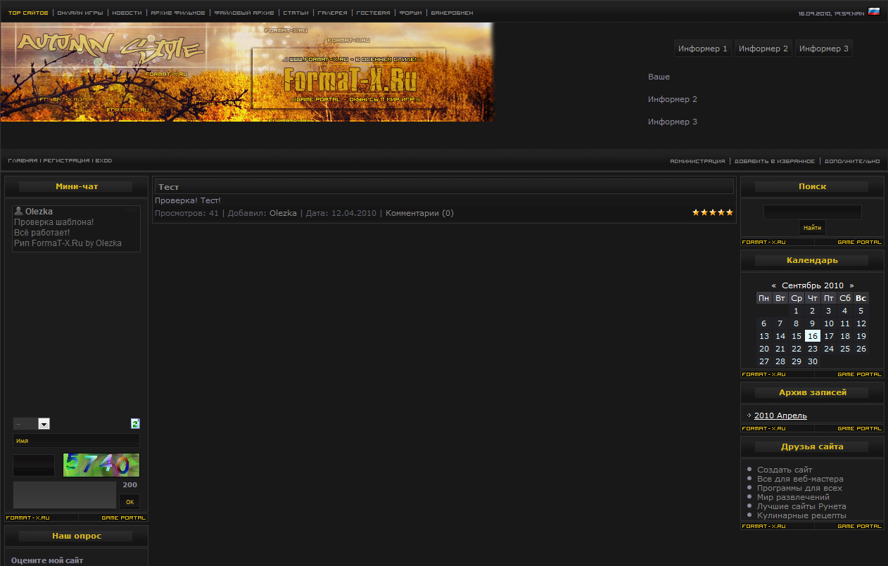 Шаблон x360a + форум, форма входа, новости сайта, конструктор рабочий! |